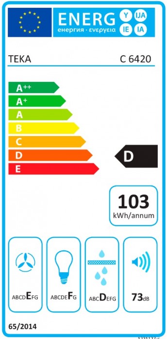 Campana clásica Teka C 6420 de 60 cm, con capacidad de extracción de 375 m³/h, 3 velocidades y mando pulsante.