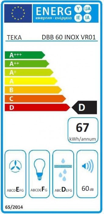 Campana decorativa Teka DBB 60 de 60 cm, con capacidad de extracción de 380 m³/h, 3 velocidades y motor de doble turbina.