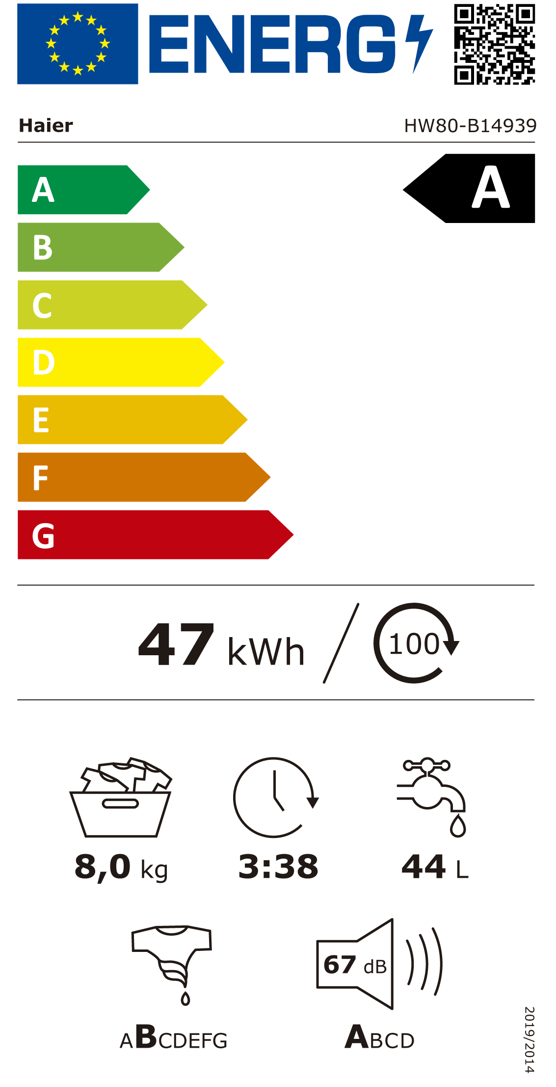 Lavadora de Carga Frontal Haier HW80-B14939-IB 8 kg 1400 rpm Blanco A