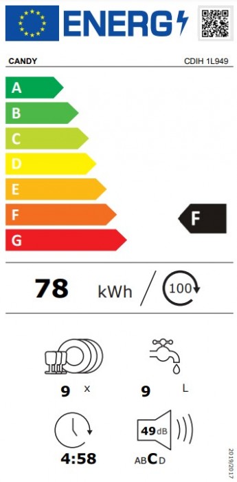 Lavavajillas Candy Brava 9 servicios 45 cm F 32901427 - CDIH 1L949.