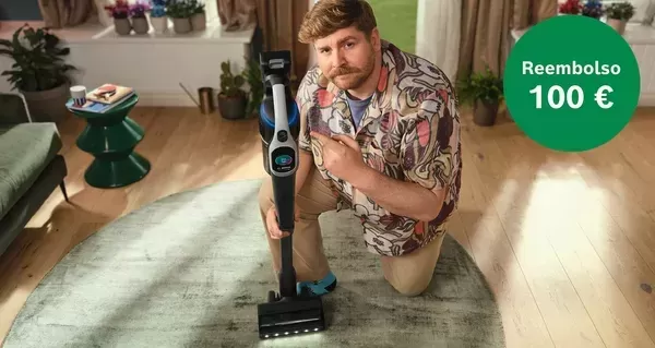 Si adquieres un aspirador sin cable Unlimited de Bosch incluido en la promoción del 1 de septiembre de 2025 al 6 de enero de 2026, llévate hasta 100€ de reembolso. Para conseguirlo solo tienes que registrar tu electrodoméstico en MyBosch, valorarlo y rellenar el formulario.